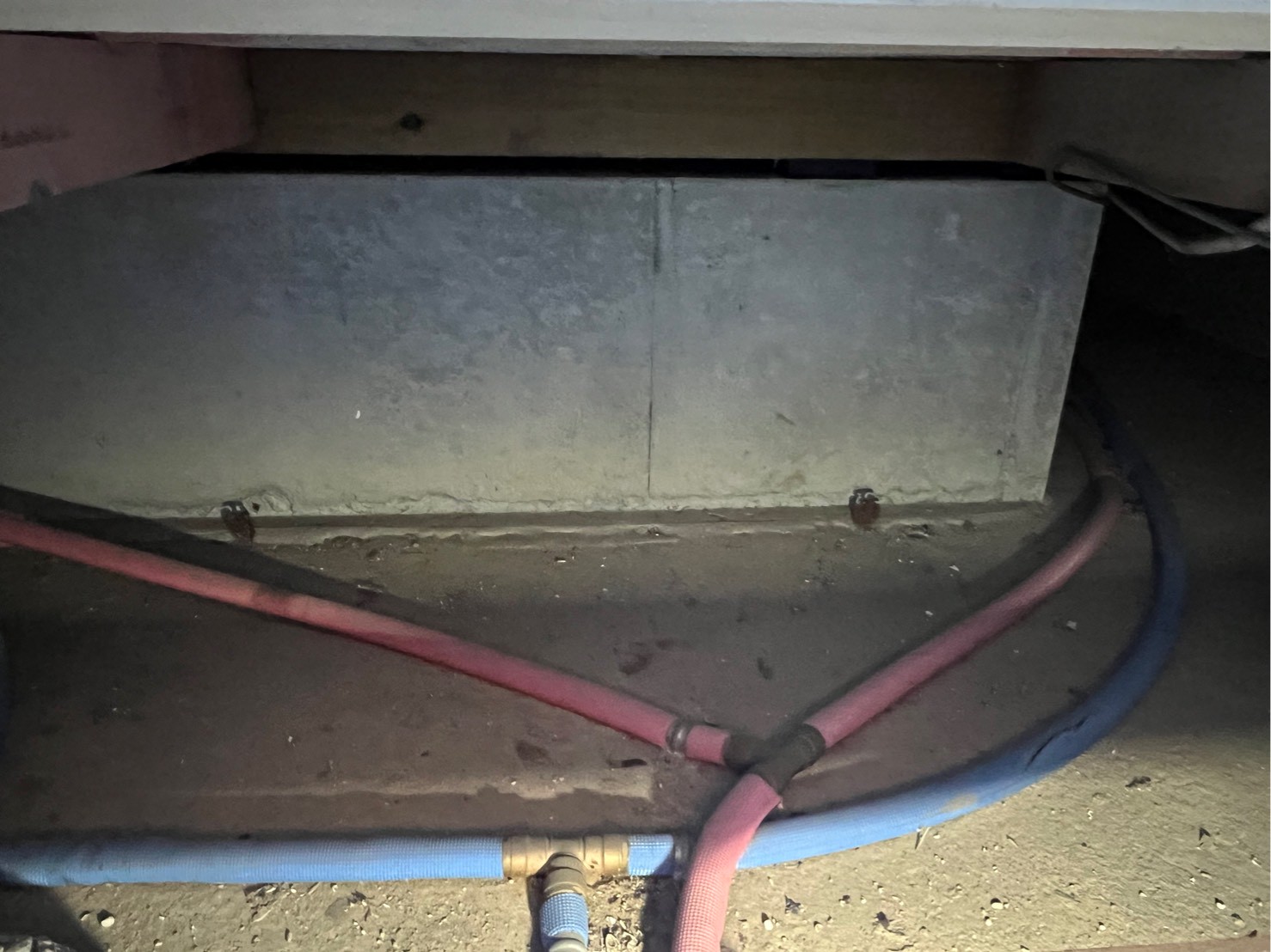 新設した点検口から床下に潜り、給水管・給湯管・基礎周りを入念に点検。