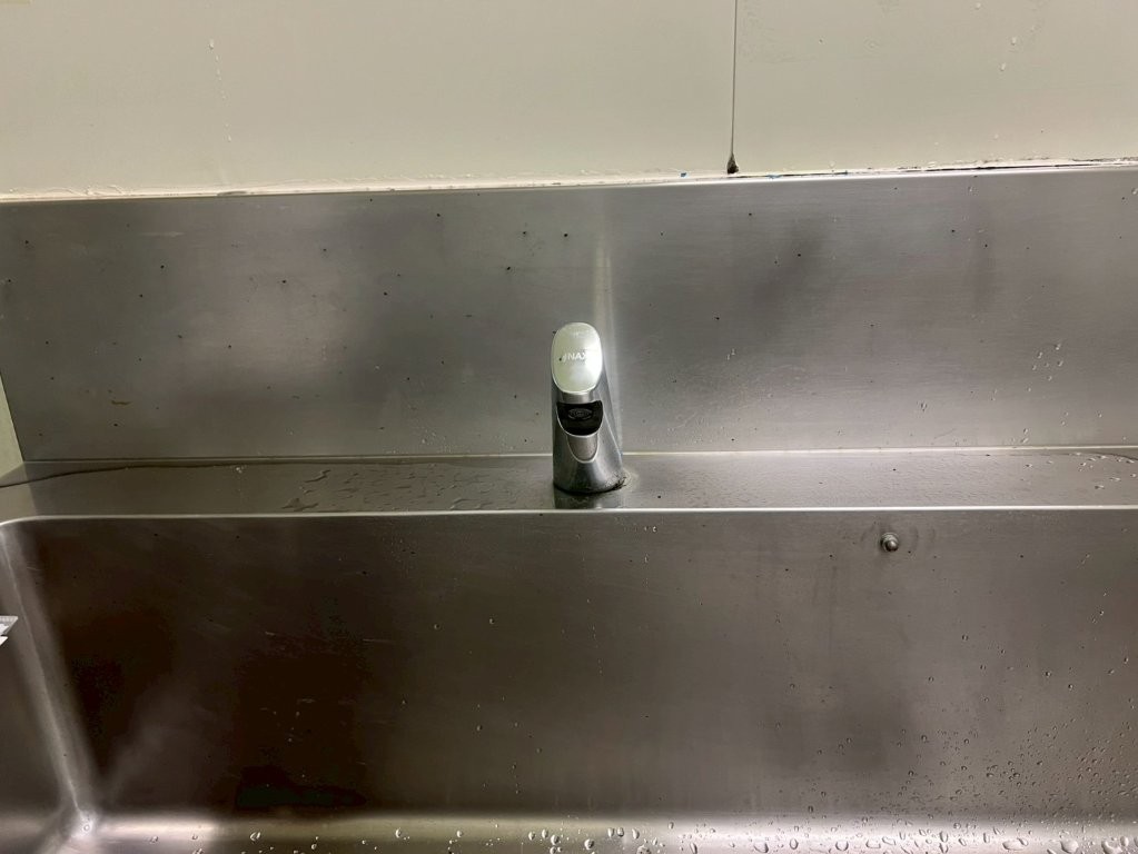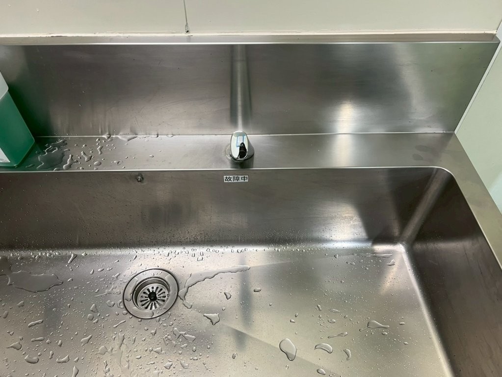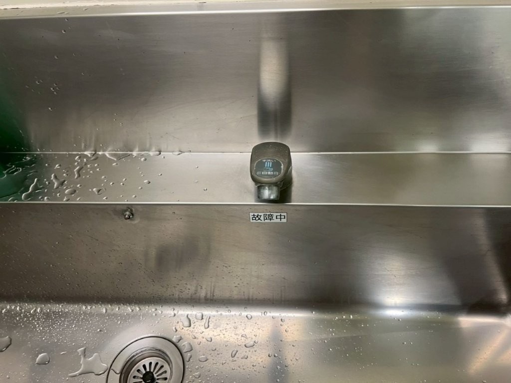 工場内の洗面台および厨房シンクに設置されていた自動水栓は、