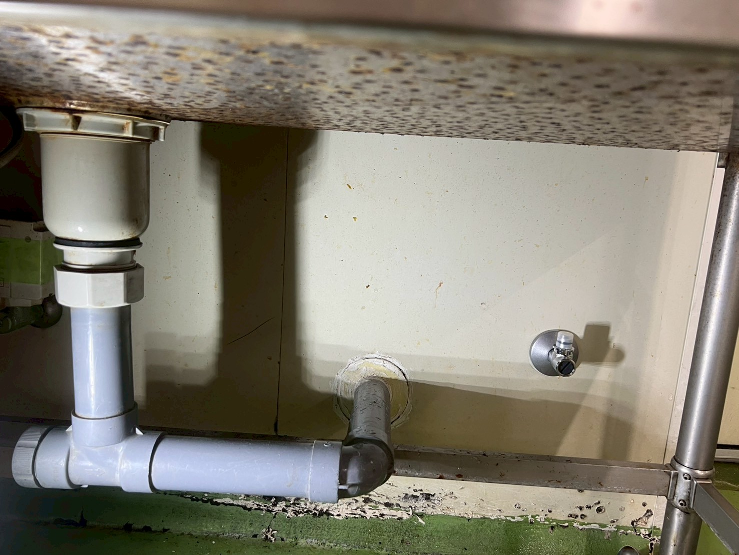 特に厨房側の水栓は完全に作動停止しており、食品を扱う現場として衛生面に支障が出ていた状況でした。