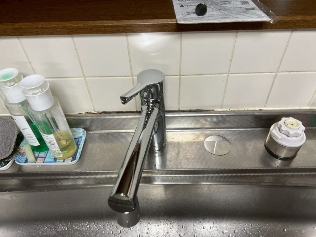 新しく設置したシングルレバー混合水栓は、