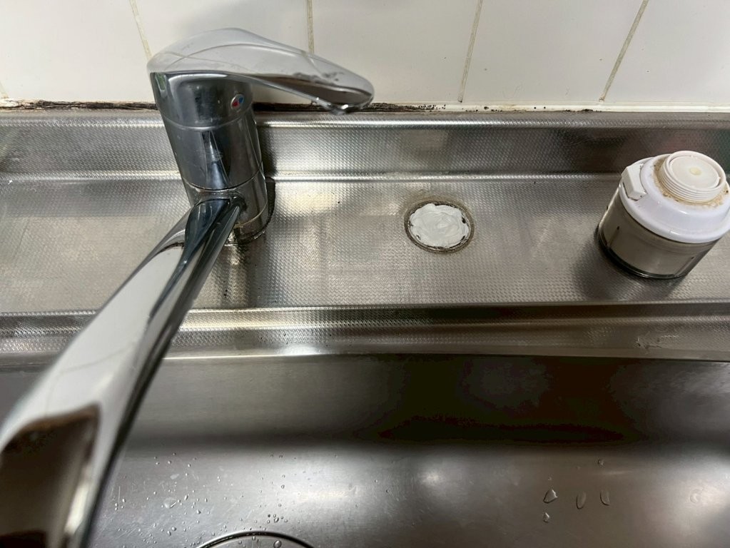 | 施工内容 | ・経年劣化したキッチン水栓の撤去 ・ビルトイン浄水器本体・専用水栓の取り外し ・シンク天板の開口部補修(専用化粧プレート仕上げ) ・新規シングルレバー混合水栓の取付 ・給水・給湯配管の接続と動作確認 ・最終チェック(漏水点検・吐水量確認) |