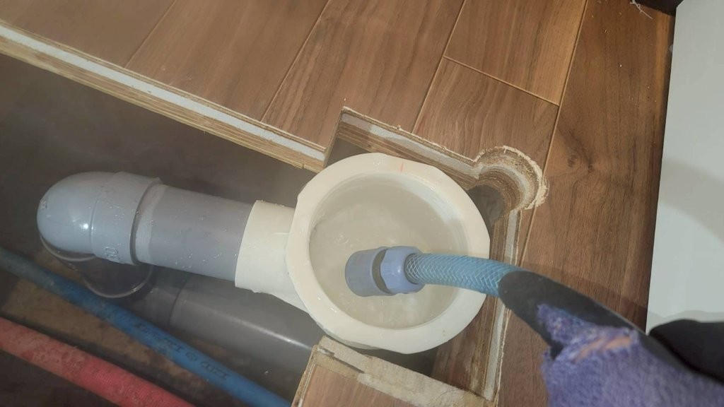 施工前調査|防水パン上に異常はなく床下配管に原因が疑われた洗濯排水不良