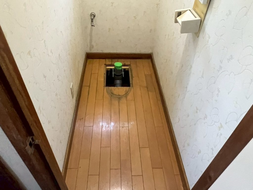 今回は床張り替えと排水芯移動も含めた施工となっていることから、排水接続部まわりの経年劣化が影響している可能性を想定し、既存便器を撤去して内部確認を行う方針としました。