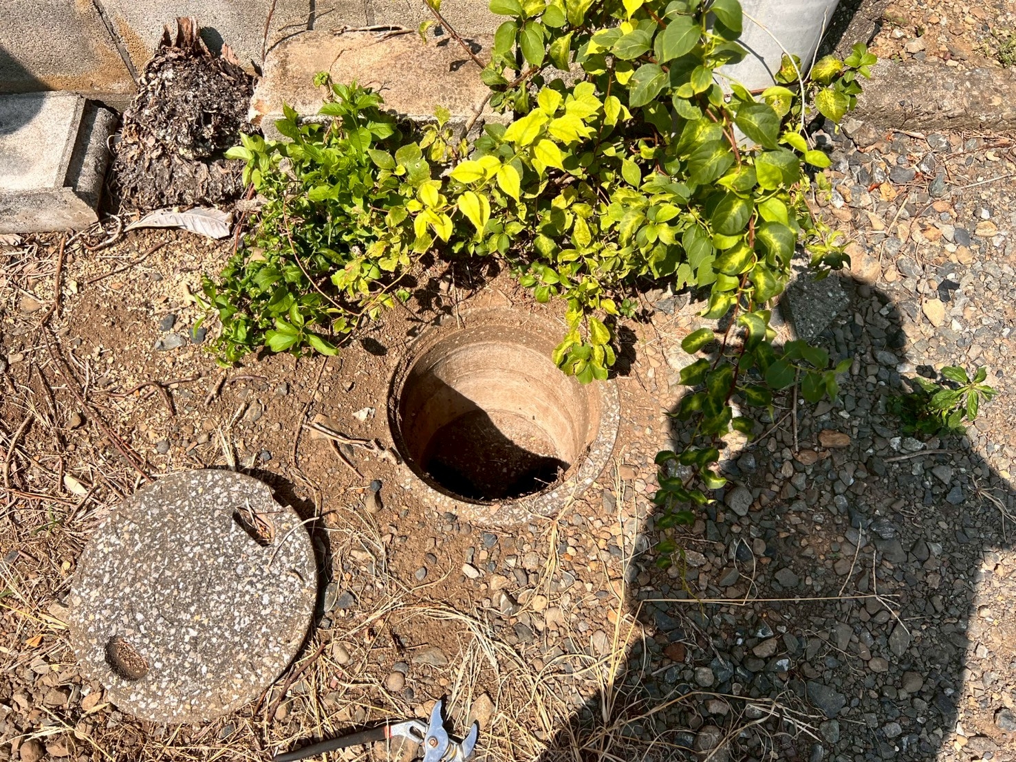 埼玉県川越市的場|排水詰まり改善のための排水枡交換工事|沈下したコンクリート枡を小口径塩ビ枡へ更新した施工事例