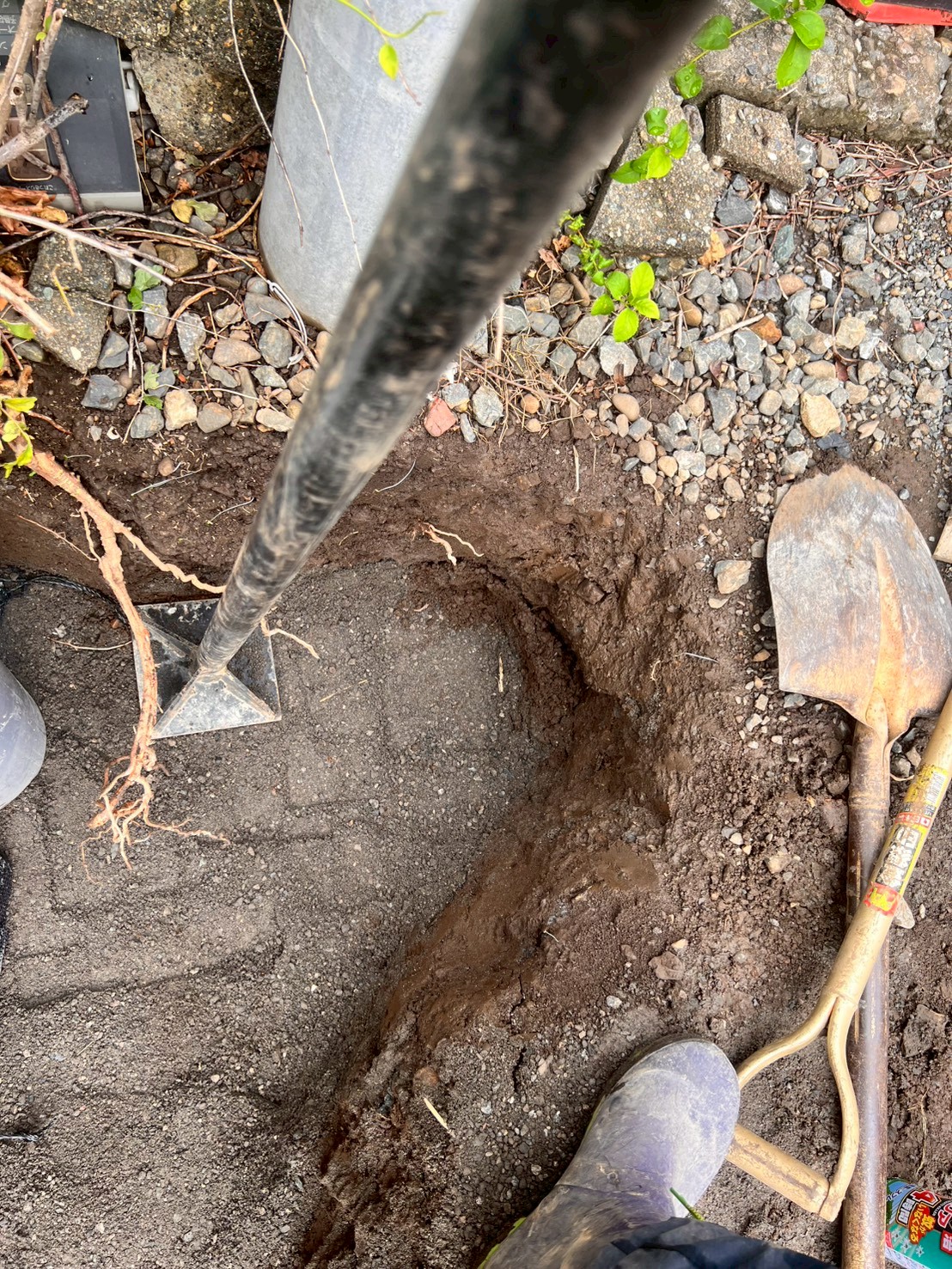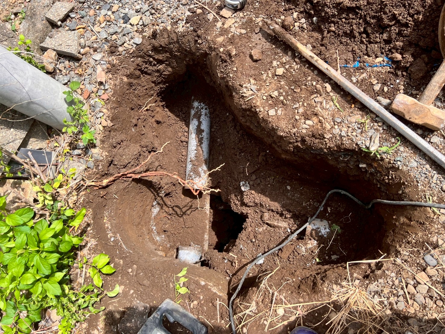 既存排水枡の掘削と配管確認