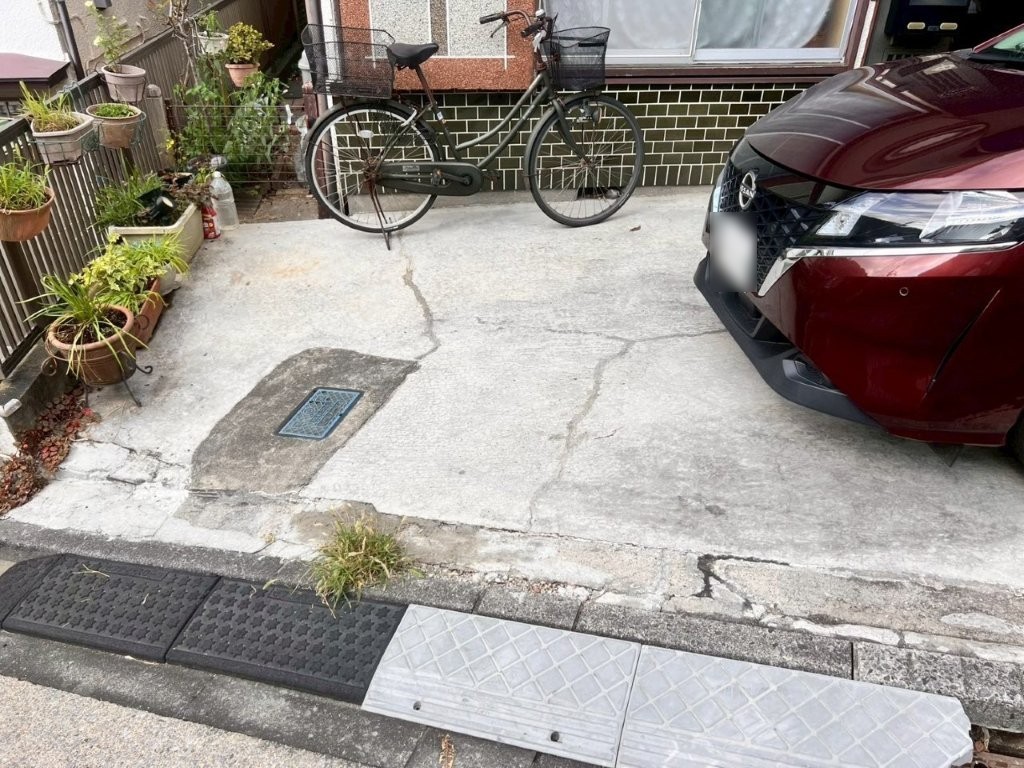 まず前面側のコンクリート土間を必要範囲で掘削し、既存給水ルートを確認しながら新しい給水配管を通す準備を進めました。
